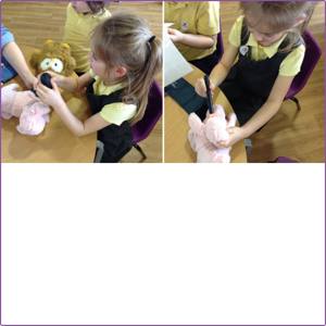 Last week, RB were visited by some very special doctors. They showed us how to use a variety of medical equipment which we got to use on our bears. We also talked about what we had to do to keep ourselves and our teddies healthy. We spoke about why we go to the doctors and came up with different things that could have happened to our teddies. After the session we got a prescription for our poorly teddy bears to take home. Following a lovely visit from the Teddy Bear Hospital, RB are now ready to become teddy bear doctors!