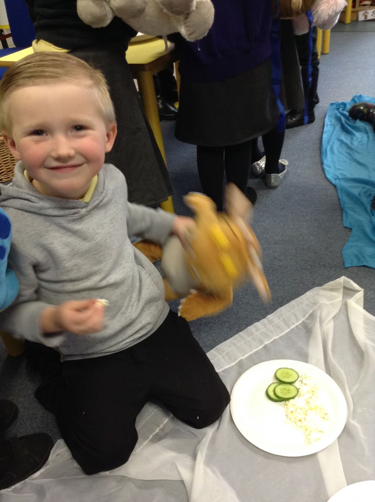 RB have had such a fun afternoon. As a result of getting all our marbles in the jar, RB voted for a teddy bears picnic! Today, all of the children brought in their favourite cuddly toys and we had picnic sandwiches with our teddies and friends. We had a special circle time at the end of our picnic where we discussed which cuddly toy we had with us, and talked about the exciting things we get up to with them outside of school. Out teddy bear picnic was a lovely way to end our last week of term before the Easter Holidays!